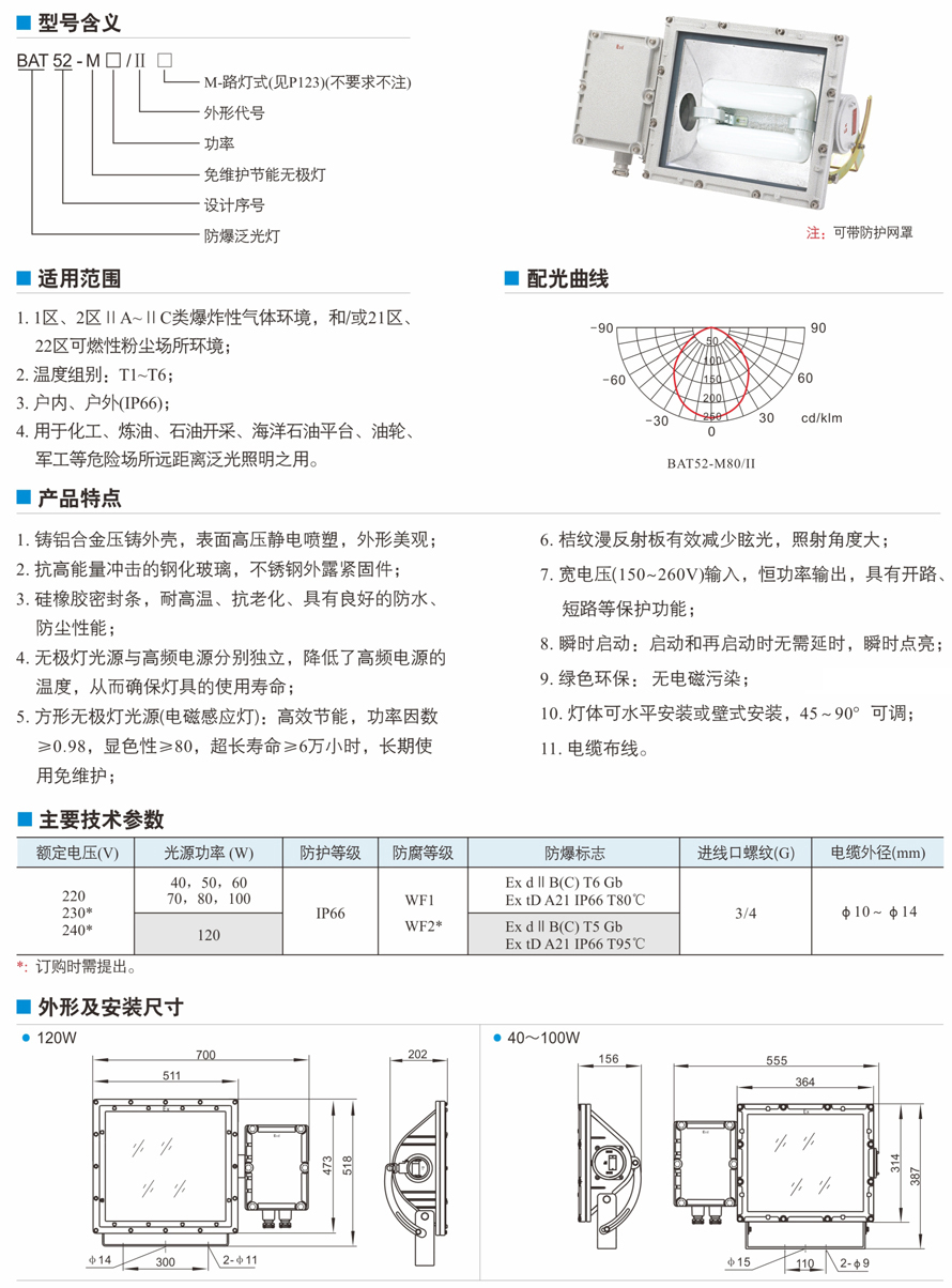 BAT52-M II系列防爆泛光燈(免維護(hù)節(jié)能無極燈)